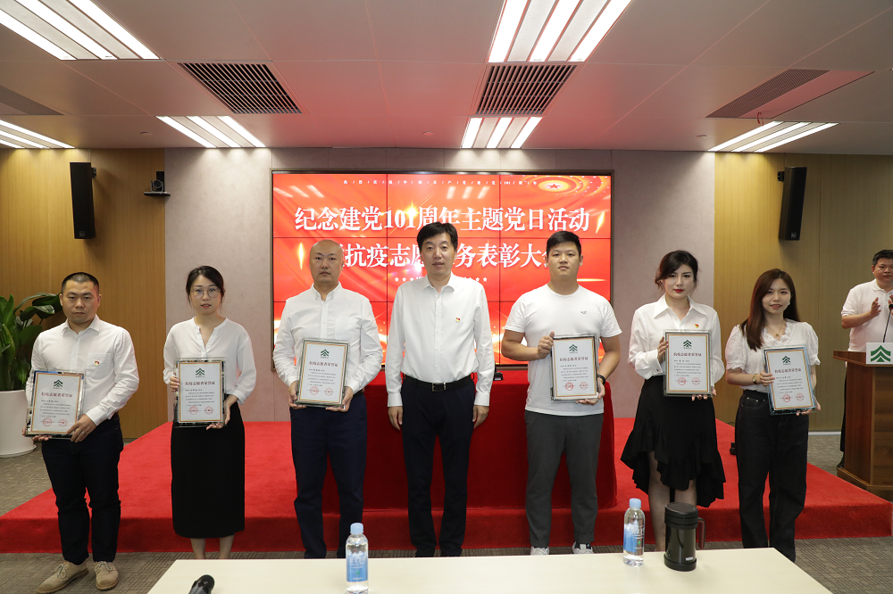 中林时代举行纪念建党101周年主题党日活动暨抗疫志愿服务表彰大会,公司党总支书记讲授专题党课。大会对积极参与上海抗疫志愿服务的员工进行了表彰,并颁发“抗疫志愿荣誉证书”,全体党员重温入党誓词。