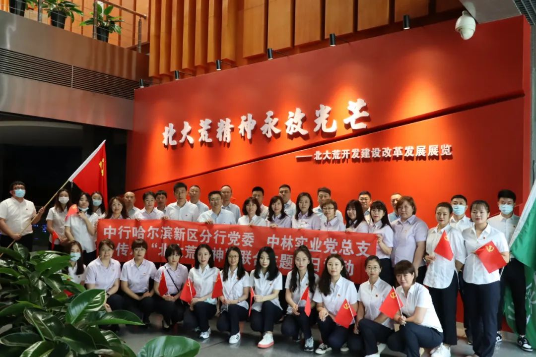 中林实业与中行哈尔滨新区分行联合组织传承“北大荒精神”主题党日活动,参观“北大荒博物馆”。全体党员用心感受昔日的“北大荒”变成如今美丽富饶的“北大仓”的光辉历程。绥芬河国林木业城党支部开展了庆祝建党101周年“四岗联创”授牌仪式。