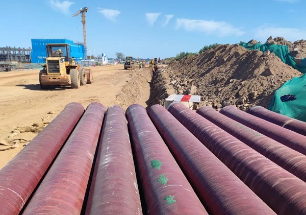 近日,中林集团所属中林鑫宙公司指导生产的DN600竹缠绕复合管道在山东省烟台市芝罘区芝罘湾一期市政工程建设中正式开始敷设。烟台市芝罘区芝罘湾一期市政工程作为烟台蓝天集团海上世界片区的首开项目,以支撑和引导城市可持续发展为目标,充分吸纳绿色低碳新技术、新应用,探索市政设施不断创新。中林绿色低碳产品在烟台推广早有成功案例,2022年12月中林竹缠绕复合管道首次应用在烟台市新港路排水排污工程,2023年