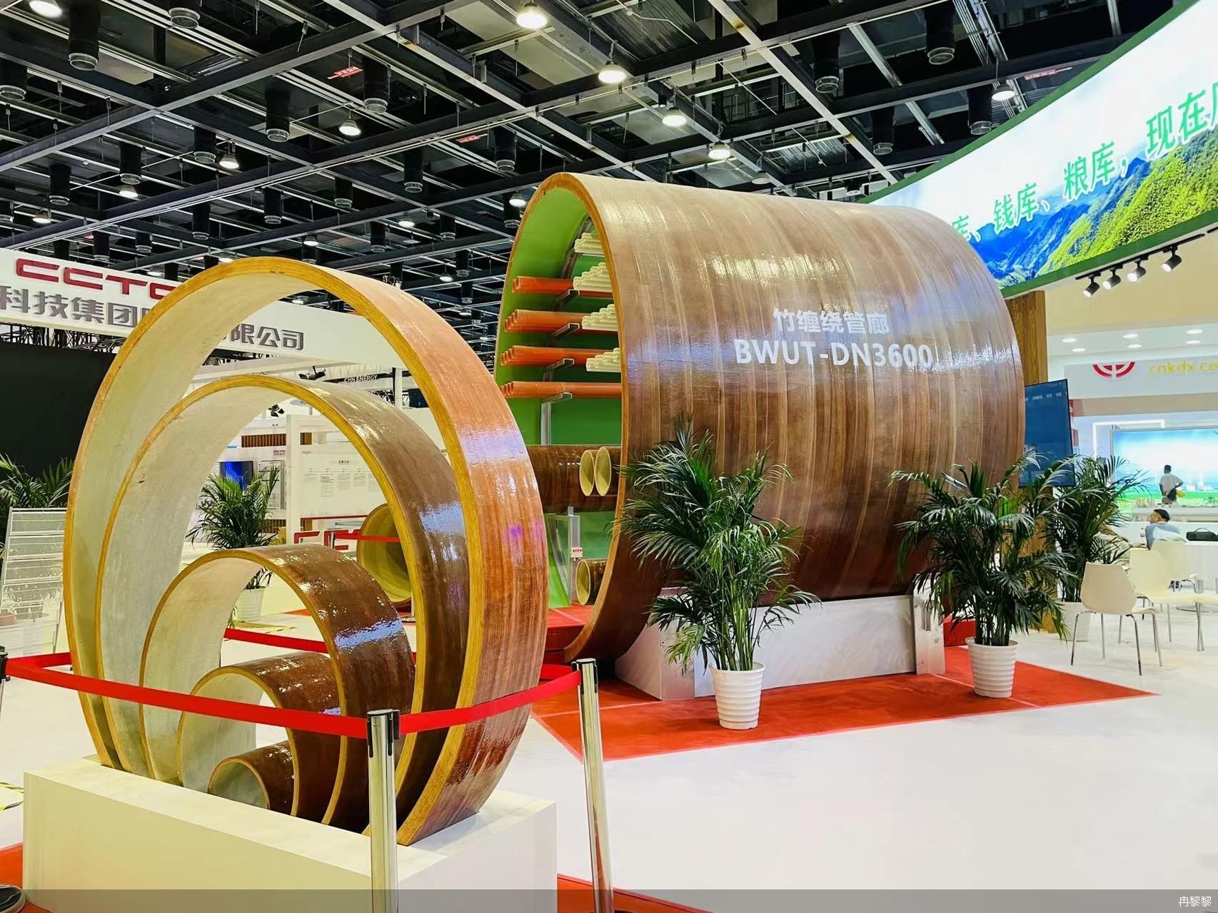 8月31日至9月5日,以“服务合作促发展绿色创新迎未来”为主题的2022年中国国际服务贸易交易会在京举办。在中国林业集团的展台上,看似脆弱的不同孔径大小的竹缠绕管廊竟能成为使用寿命超过50年的地下管廊新材料。固碳储碳节能减碳中林集团中国林产品集团有限公司党委书记、董事长刘乃铭介绍,竹缠绕复合材料技术是以竹材为基材、以树脂为胶黏剂,采用缠绕工艺加工成型的新型生物基复合材料。竹