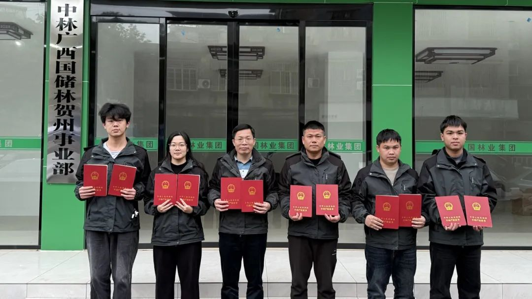 坚持示范引路,积极参与集体林权改革。中林广西公司紧紧抓住集体林权改革契机,持续探索规模化森林经营、高质量资产盘活新路径,通过密切与林业主管部门、地方政府的沟通交流,大力推进国储林项目确权登记工作,推动在控贺州昭平5.7万亩林地成功办理当地“首批”不动产权证,为央地联手共建高质量国储林项目注入信心和动力。积极参与“国储林助推集体林改指标体系构建”课题调研,探索量化国储林项目经济效益、生态效益、社会效益,助推集体林权改革。