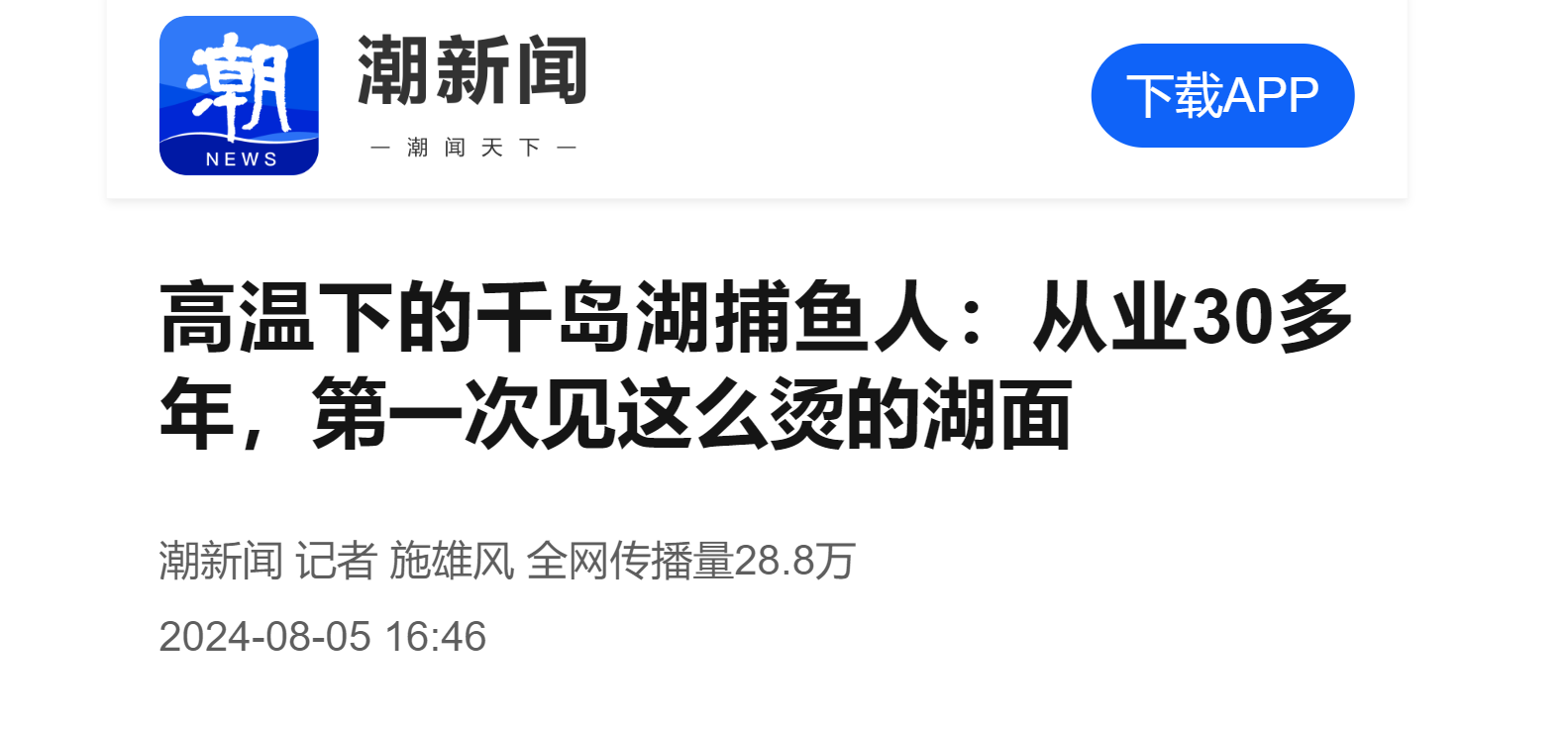 高温下的千岛湖捕鱼人:从业30多年,第一次见这么烫的湖面