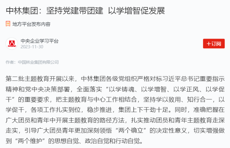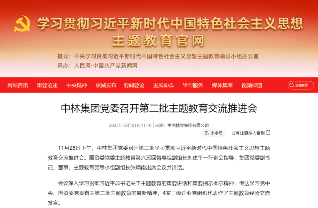 近日,中央主题教育官网、“学习强国”学习平台相继报道聚焦集团第二批主题教育开展情况、实际成效和好经验、好做法,为中林集团扎实开展主题教育营造了浓厚氛围。