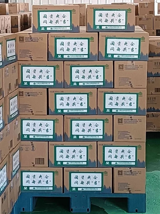 这批物资主要为食品级消杀产品,另外还有1500箱共计3.6万瓶中林“冰泉龙湾”高端天然软矿泉水。