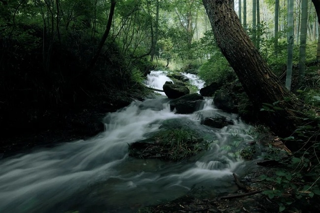盛夏的阳光穿过郁郁葱葱的枝叶