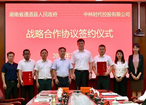 7月6日,中林时代控股有限公司与湖南省通道侗族自治县人民政府在湖南通道签署生态产品价值实现全面战略合作协议。中林时代党总支书记、董事长、总经理姜圣波与通道县县委书记毛运鸿出席并见证签约。