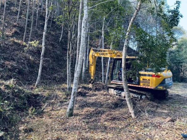 2022年10月,中林三明公司依托永安市青水乡适宜的气候条件和丰富的松林资源,以自主培育的方式,利用疫木伐除后的松树蔸树桩套种中药材茯苓,发展特色林下茯苓种植产业,种植面积共计536亩。