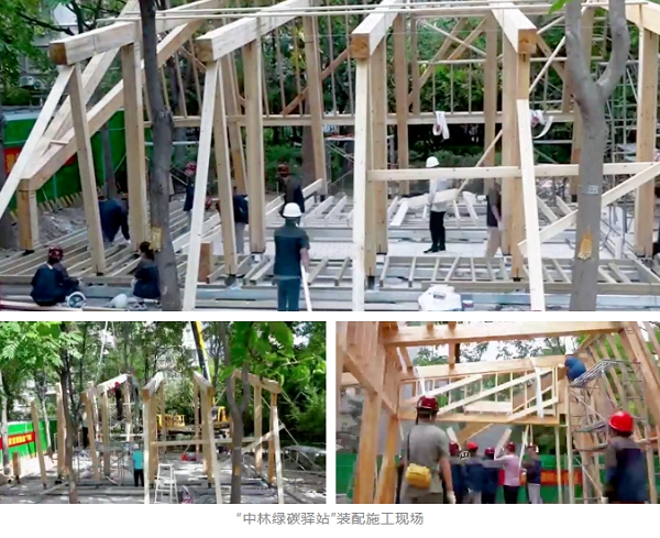 近日,由中林集团和北京林业大学共同研发的近零能耗混合木结构示范工程“中林绿碳驿站”已完成主体结构施工,即将在北京林业大学校园图书馆东侧落户,为校园的秋色增添一份“木”之暖意。