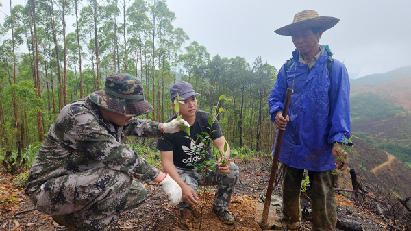 2023年,中林广西梧州事业部开始在云会村探索科学扩绿新模式。经过前期大量调研,技术骨干们发现,云会村水土流失严重,传统经济、用材林苗木不易存活。在统筹考虑水土流失综合治理、促进当地经济发展、投入回报周期、经营管理难度等因素后,梧州事业部给出了方案:即围绕“中国茶油”核心品牌,构建“中林基地+企业+合作社+农户”的经营模式,大力推广“油茶+N”复合经营技术,推进“种产储加销”一体化建设,在基地属地提供油茶复合经营技术指导服务,着力打造中林广西油茶高产示范基地,在有效改善村容村貌和生态环境的同时,提高村民收入,实现生态和经济效益“双赢”。