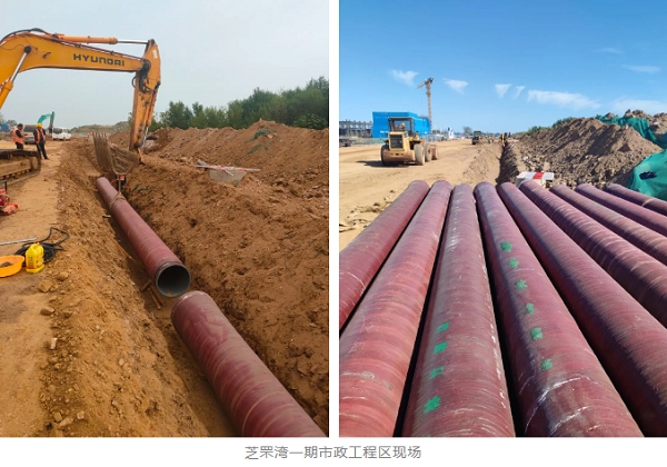 近日,中林集团所属中林鑫宙公司指导生产的DN600竹缠绕复合管道在山东省烟台市芝罘区芝罘湾一期市政工程建设中正式开始敷设。