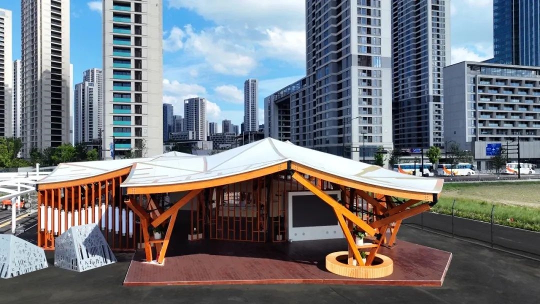 坐落于杭州亚运村的《云桂》项目,建筑面积623㎡,为亚运村提供候车、赛时比赛转播、场景互动等服务功能。
