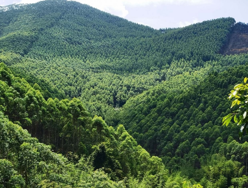 春天整山、挖坑、下肥、种苗;夏天打药、除草,台风来袭,风口夺桉;秋天除蘖、修枝、巡护、防火 ;冬天防霜、防冻。跟一蔬一饭同样来之不易的,是一沟一坡的桉树。无论风雨,工人勤勤恳恳种桉、护桉,用攒下的钱解决家里部分开支。朴实的工人对老莫心存感激 :“我们学会种桉树,思想变了,口袋鼓了。”