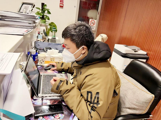 后疫情时代,一切充满了不确定性。十一月下旬北京新冠疫情再次爆发,公司只能保持5%的到岗率,无法到岗上班给公司运营带来了难度。身为党员,更身为一名青年团干部,杨天英阔从11月17号一直坚持到岗值班至今,为了维持公司正常生产经营,保证各部门使用三章,他履职尽责在办公室筑起堡垒防线确保业务的顺利开展;为了保证领导同事们能测上抗原,第一时间知道自身身体情况,他在单位把一个个的抗原包好准时邮寄给需要的领导同事们;为了协调各部门的工作,很多需要邮寄的材料或给客户的合同发票等,他都能第一时间整理好准时邮寄到同事和客户手中,保障了公司的正常运作。防疫工作事关公司运营发展全局,这一刻他冲锋在前,勇于担当,作为一名新时代的中林青年,他默默奉献一心坚守,用汗水彰显青春底色!