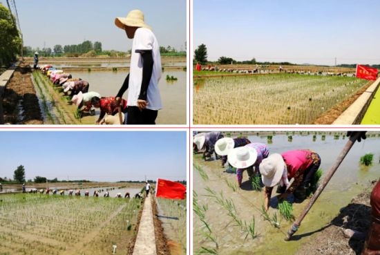 为保质保量完成今年的栽插工作,公司组织党员、青年员工齐上场。一如既往,起苗、归类、排秧、栽秧……,头顶烈日,汗流浃背,整个过程将持续一周,风雨无阻。