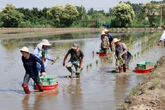 为保质保量完成今年的栽插工作,公司组织党员、青年员工齐上场。一如既往,起苗、归类、排秧、栽秧……头顶烈日,汗流浃背,整个过程将持续一周,风雨无阻。