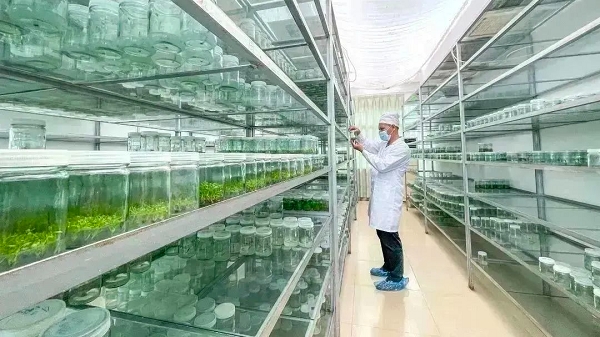 在中林雷林公司属下林业科学研究分公司研发中心无菌室的组培瓶内,一簇簇幼苗吐着嫩绿的芽儿;无菌室外的苗圃基地里,一畦畦红红绿绿的树苗舒展着枝叶,接受着阳光雨露的洗礼……