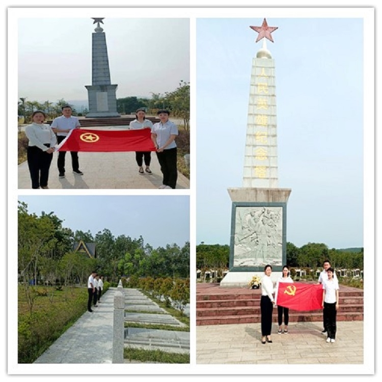 公司党支部党员代表们来到爱国主义教育基地-勐龙烈士陵园,为烈士墓清理杂草,在烈士纪念墓碑前默哀鞠躬缅怀,深切表示对解放战争中牺牲的烈士、解放后与境外国民党残匪斗争中牺牲的烈士、1961 年中缅勘界警卫作战中牺牲的烈士、对越自卫还击战中牺牲的烈士及为保卫西双版纳和平安宁献出生命的军警战士的悼念之情。