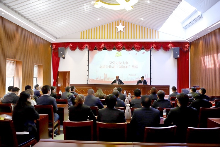 会上党委书记汪建敏就扎实推进党史学习教育提出三点要求:一是把开展党史学习教育作为一项重要政治任务扎实推进,增强“四个意识”、坚定“四个自信”、做到“两个维护”;二是按照党史学习教育安排,压实责任、细化措施,确保党史学习教育高质量推进;三要坚定不移学以致用,把党史学习教育成果切实转化为“开好局、起好步”的强大动力,全力抓好生产经营、深化改革、党的建设等各项工作,以优异成绩迎接建党一百周年。党员代表结合近期党史学习教育的集体学习和个人自学内容,立足本职岗位,联系思想和工作实际,分享了各自的学习感悟和心得体会。公司党委委员、副总经理邬劲松以“学党史做实事 高质量推动‘湖泊+’战略”为题为全体党员讲授了专题党课。
