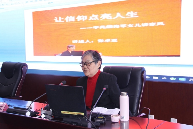 在党课中,李兆麟将军的女儿张卓亚讲述了她家几代人近百年的峥嵘岁月,用自己的亲身经历讲述了家庭的变迁、家风的延续、红色基因的传承。通过回忆父亲李兆麟将军的讲述,为大家展现了她心中的东北抗日联军:一支从来没有加入国军序列的中国共产党领导的抗日队伍,在没有任何外援的情况下,团结东北各种抗日武装及各阶层人民,以最少的人数、最长的时间、最纯粹的信仰、最艰苦卓绝的毅力、在最严酷的自然环境下,与武装到牙齿、惨无人道的日本帝国主义近百万重兵打了整整十四年!东北抗日联军在生与死、血与火的磨砺中熔铸成伟大的东北抗联精神要代代传承。