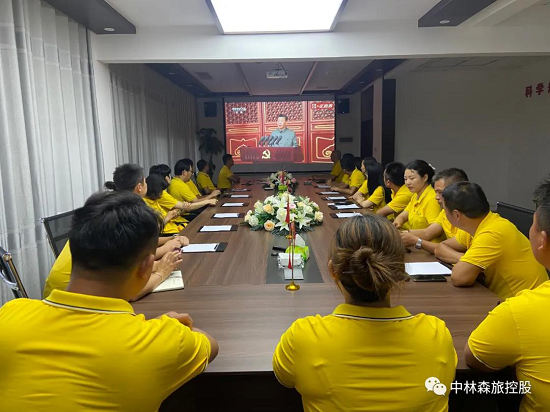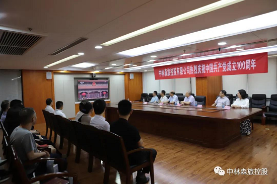 中林森旅控股有限公司总部及公司所属各级党组织、党员干部职工集中收看了庆祝中国共产党成立100周年大会,认真聆听了习近平总书记在庆祝大会上的重要讲话。