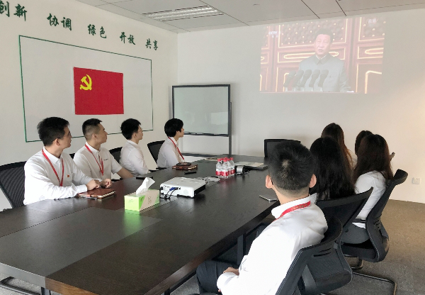 7月1日上午,举世瞩目的中国共产党成立100周年大会在北京天安门广场隆重举行,公司按照集团党委通知要求,组织全体干部职工集中收看庆典盛况,聆听习近平总书记在庆祝大会上的重要讲话,共同见证中国共产党百年成就,共同感受中国崛起的磅礴力量。