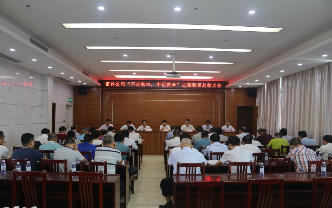 9月9日,雷林公司召开“不忘初心、牢记使命”主题教育总结大会,全面回顾总结公司主题教育开展情况,对巩固深化主题教育成果、抓好整改落实工作进行部署安排。公司领导班子成员,各单位行政主要领导、党组织书记或分管党务副书记及党办主任,公司各部门主要领导, 森林公安分局、岑溪中林公司党组织主要领导, 公司主题教育办公室成员等50多人参加了会议。