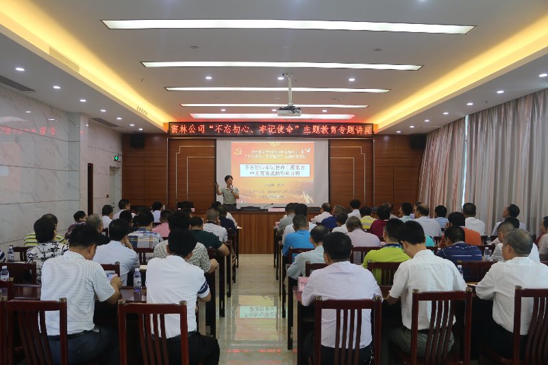 6月27日,雷林公司举办“不忘初心、牢记使命”主题教育专题讲座暨“七一”总结表彰会,公司领导班子成员,中层以上管理干部,雷州林区公安分局及岑溪中林公司主要领导,各单位党办主任,直属退休党支部书记等120多人参加了活动。执行董事、总经理潘松海主持讲座及会议。