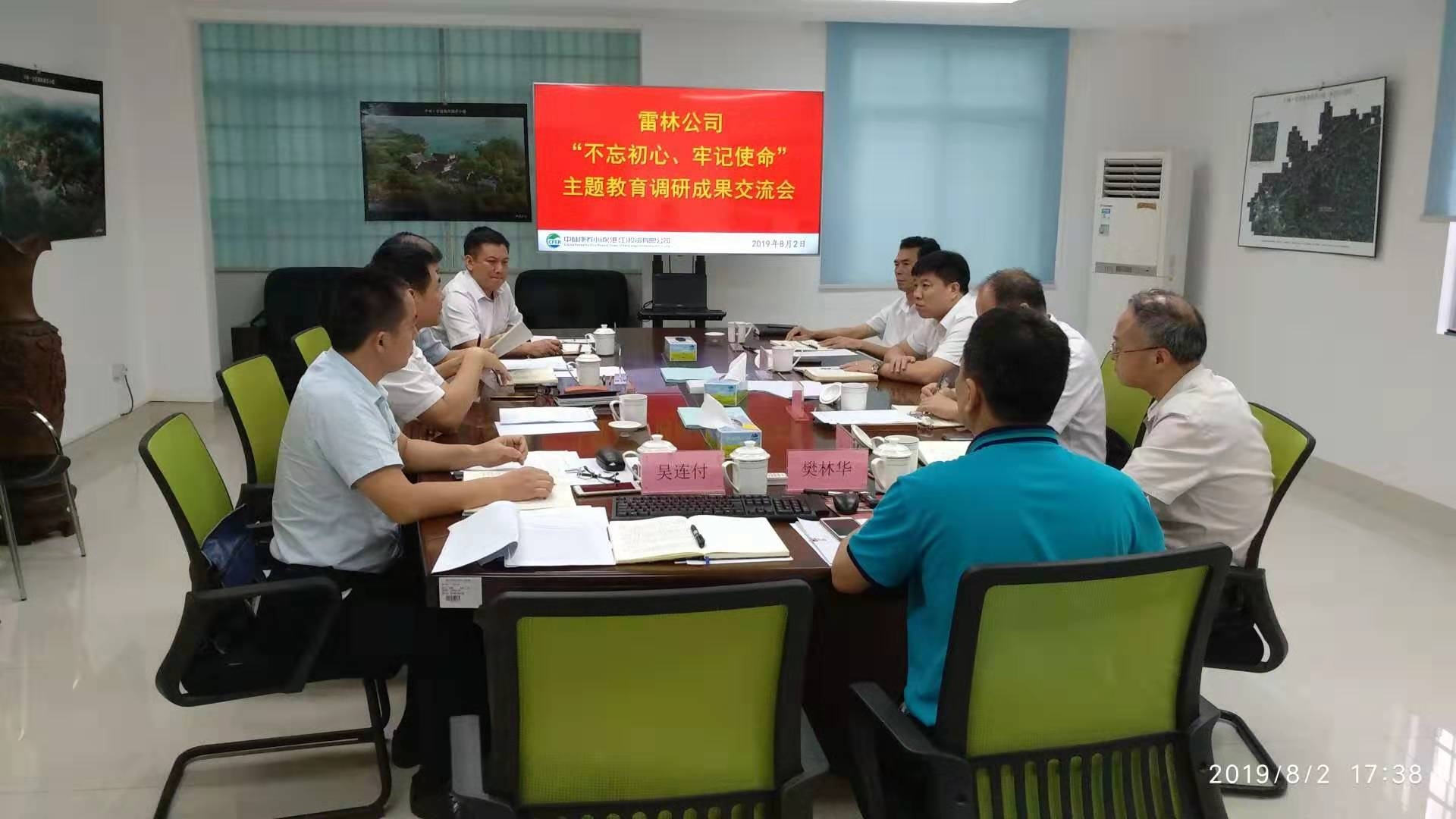 在主题教育集中学习研讨会上,首先传达学习了集团公司《关于进一步推进“不忘初心、牢记使命”主题教育八项重点工作的通知》精神,对抓紧落实主题教育六项重点工作进行了部署安排,提出了明确要求。接着,在听取了中林康养小镇(湛江)投资有限公司的工作汇报后,公司领导班子成员围绕“加快推进中林康养小镇项目建设”的主题,进行了广泛深入的交流研讨,对目前存在的问题进行一一分析,对加快推进项目建设进行了探讨,提出了建设性的意见及建议。