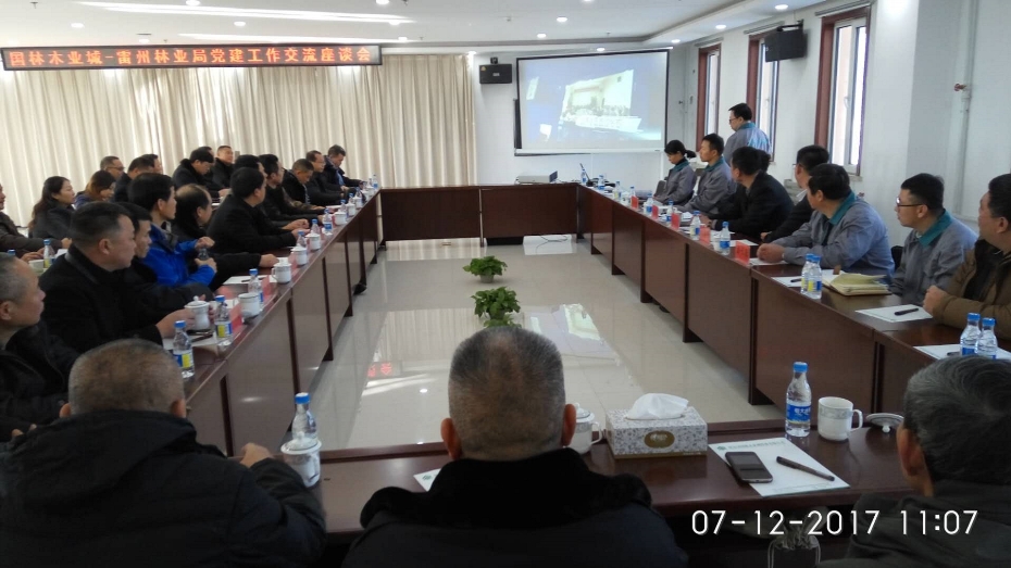 在绥芬河期间,全体成员参观了国林木业城,见证了集团公司的建设发展新模式,双方举行了党建工作交流座谈会。雷州林业局局长潘松海、党委书记庞统、国林木业城董事长陈永广分别介绍了雷林及国林木业城的生产经营及党建工作。双方均表示,今后要加强交流,寻求合作,共同发展,为中林集团实现“做行业领袖、创一流企业”的目标做出更大的贡献。